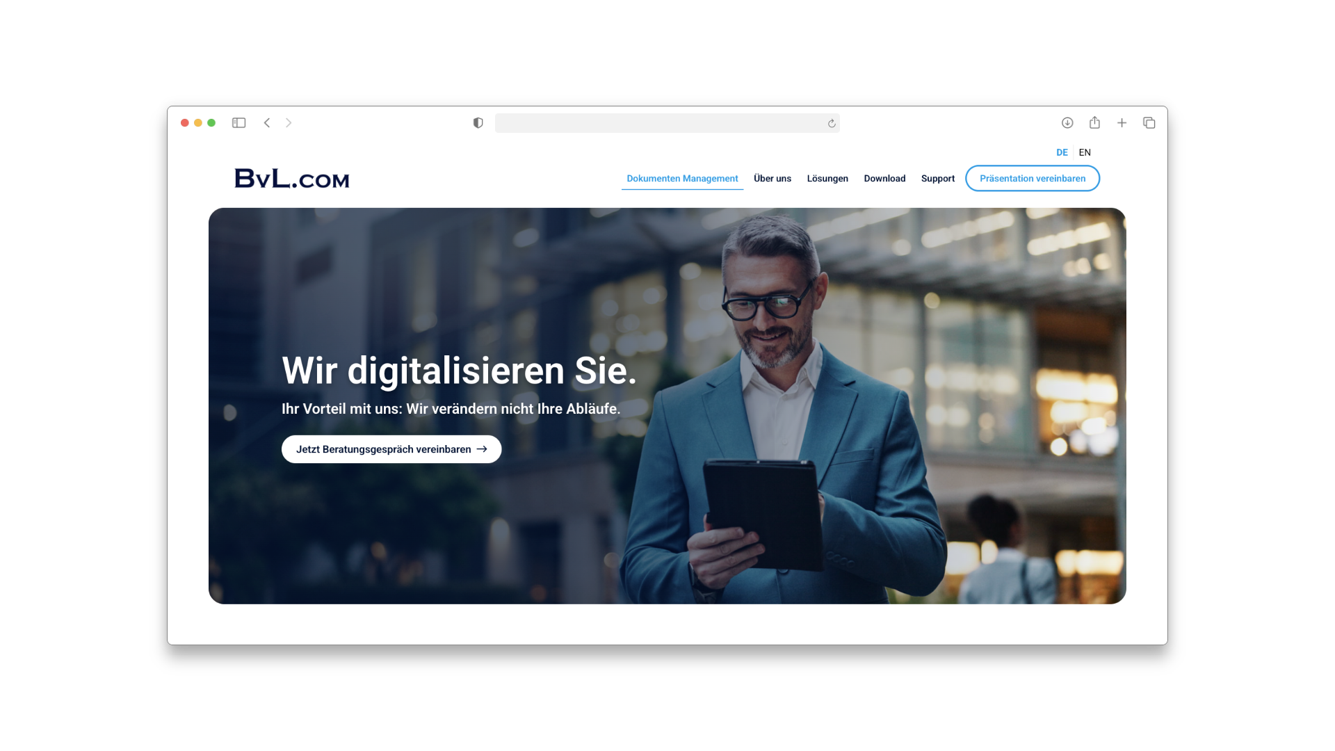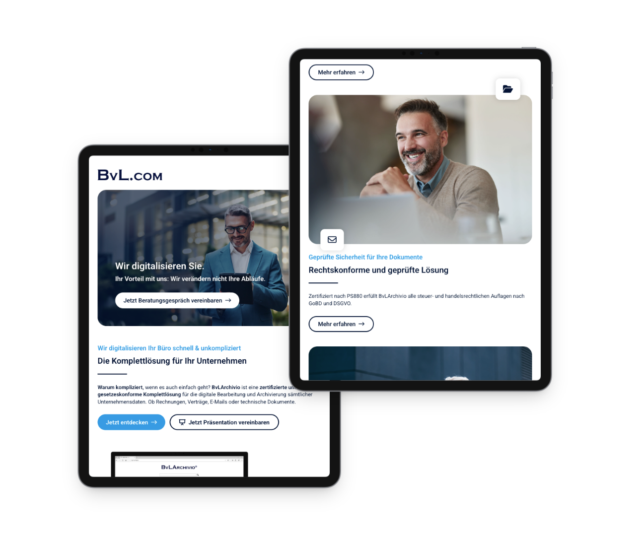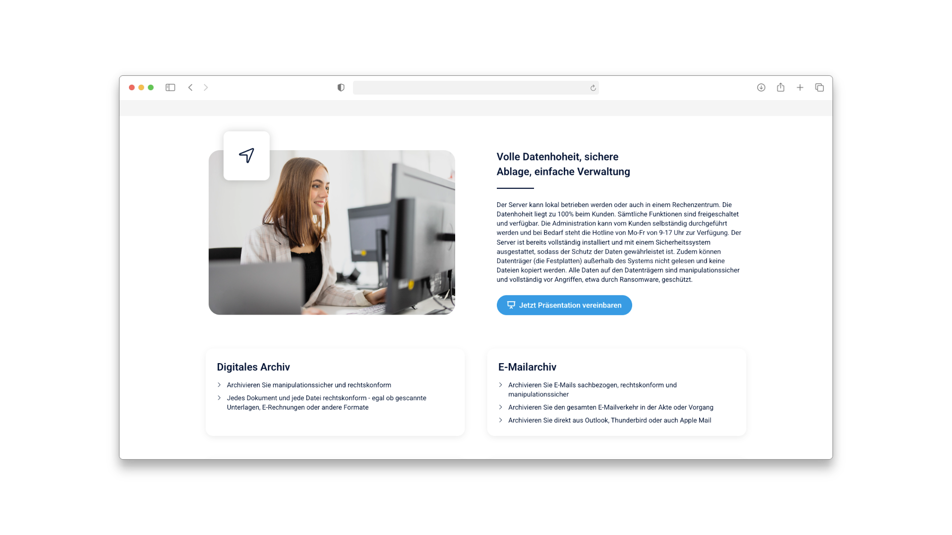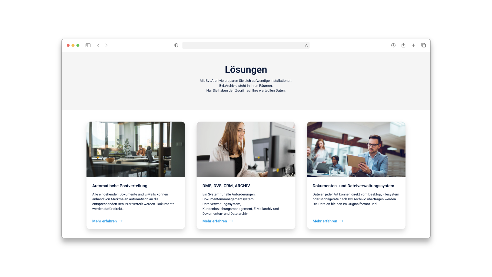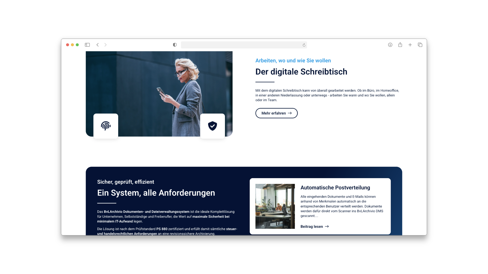 Für BvLArchivio haben wir den kompletten digitalen Auftritt konzipiert, gestaltet und technisch realisiert. Die Herausforderung bestand darin, ein komplexes technisches Produkt (ein physischer Archiv-Server mit Software-Suite) verständlich und vertrauenserweckend zu präsentieren.