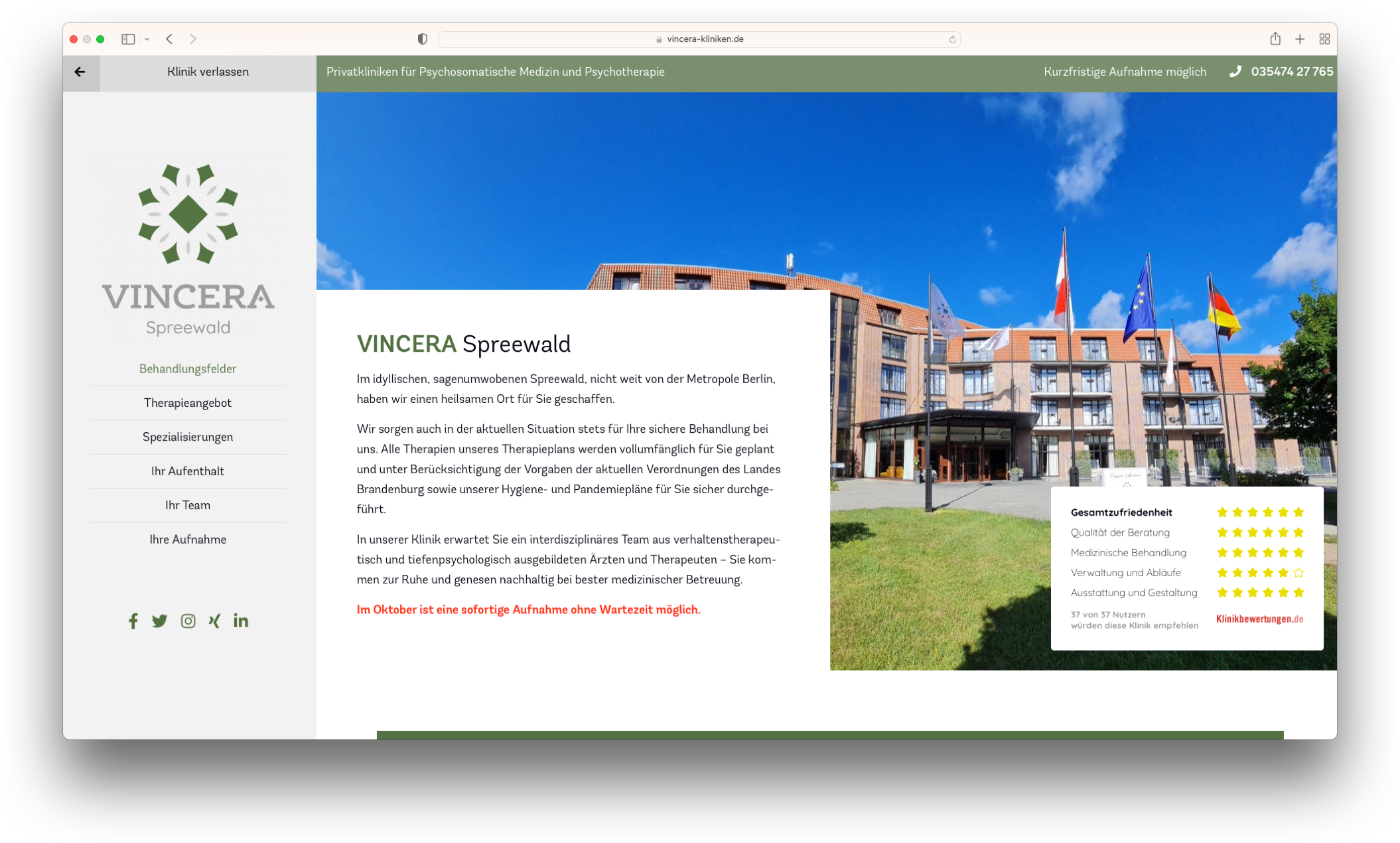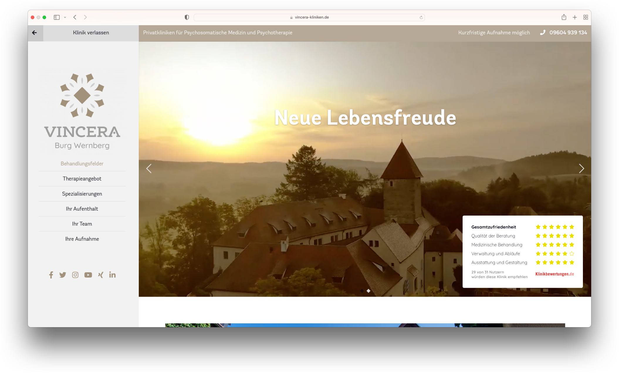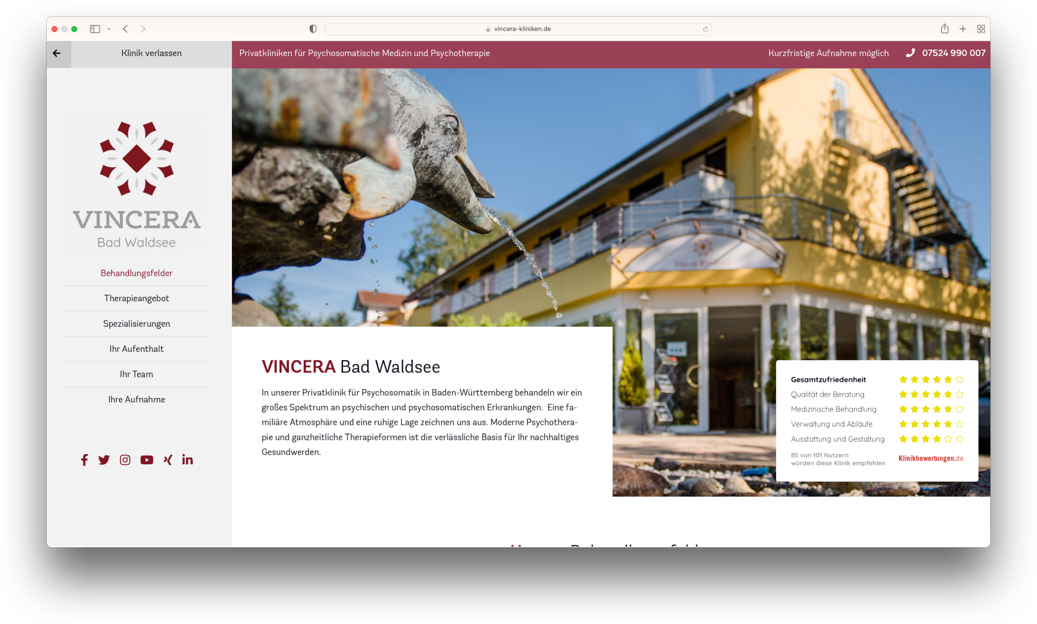 Die drei Privatkliniken für Psychosomatik und Psychotherapie von Vincera versprechen jedem ihrer Patienten ein ruhiges, unterstützendes und verständnisvolle Umfeld. Mit ihren erfahrenen Ärzten, Therapeuten und Pädagogen bietet Vincera jedem Patienten innovative und maßgeschneiderte Behandlungskonzepte.